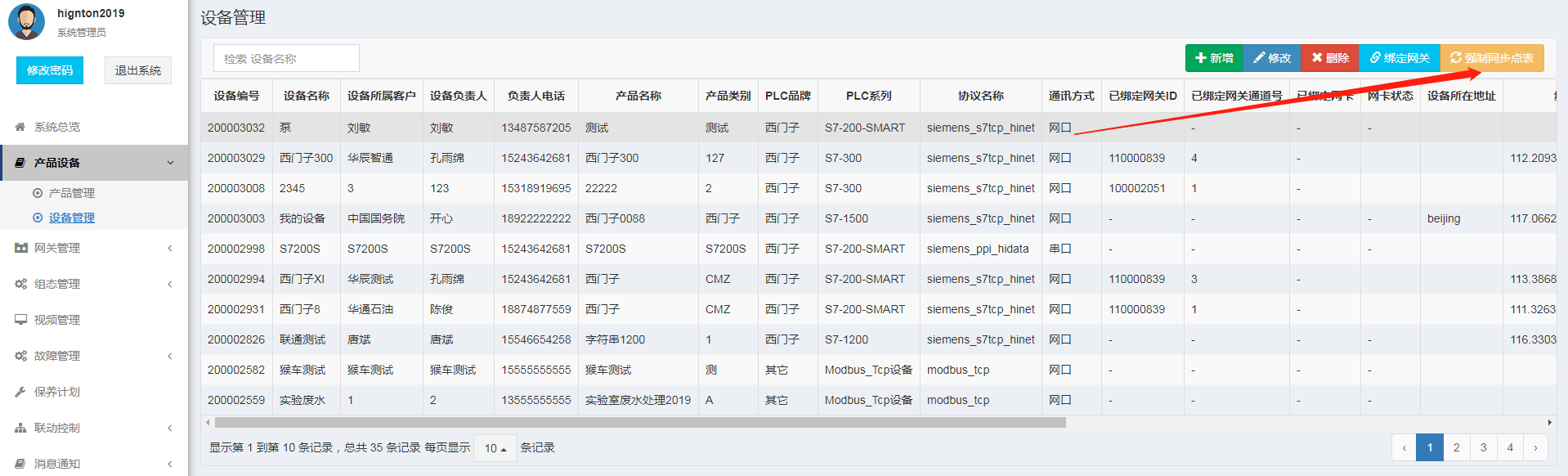 1. 是否強制同步點表,以思普云平臺采集數據為例,思普云平臺的設備管理處,選擇設備點擊【強制同步點表】。