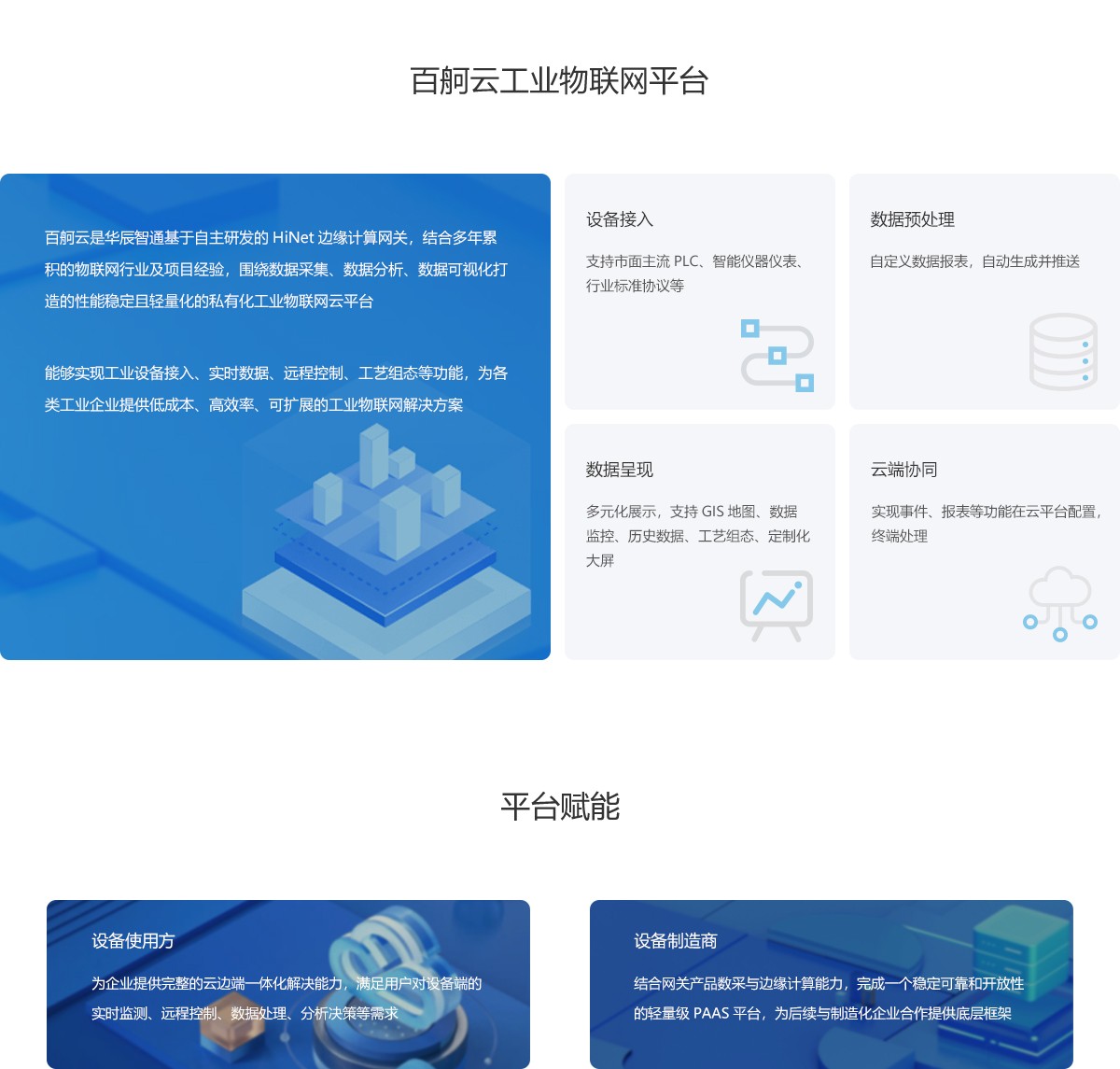除此之外,我們還另外提供了設(shè)備聯(lián)網(wǎng)數(shù)采能力。這是建立在智能化設(shè)備的基礎(chǔ)上的一項技術(shù),可以將現(xiàn)有的設(shè)備從孤立的狀態(tài)中解放,并將設(shè)備與其他生產(chǎn)系統(tǒng)、設(shè)備進行聯(lián)網(wǎng),形成了一個快速響應(yīng)、高效工作的智能化生產(chǎn)過程。聯(lián)網(wǎng)數(shù)采能力可以通過各種傳感器和數(shù)據(jù)采集系統(tǒng)將設(shè)備的各種特性參數(shù)進行統(tǒng)計,并將其結(jié)果實時地上報到生產(chǎn)控制中心或者到廠家云平臺之類的應(yīng)用程序中,這樣可以幫助企業(yè)在生產(chǎn)運營中實現(xiàn)數(shù)據(jù)化管理,并且讓企業(yè)的管理層可以通過數(shù)據(jù)分析得出更加科學(xué)的決策,讓企業(yè)輕松做到精益求精的理念,大幅降低生產(chǎn)成本同時保證生產(chǎn)質(zhì)量的穩(wěn)定。